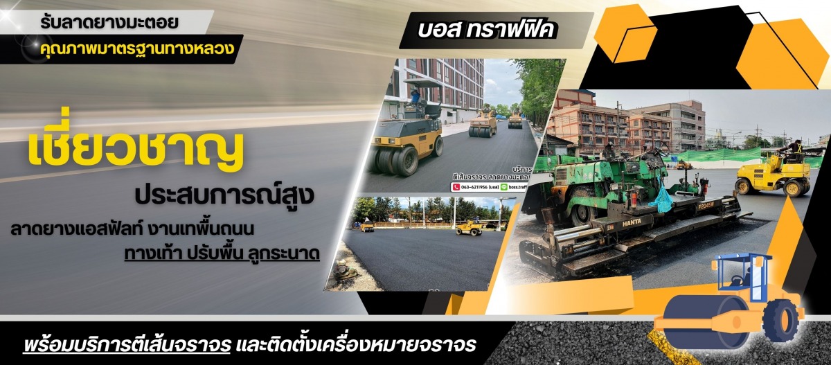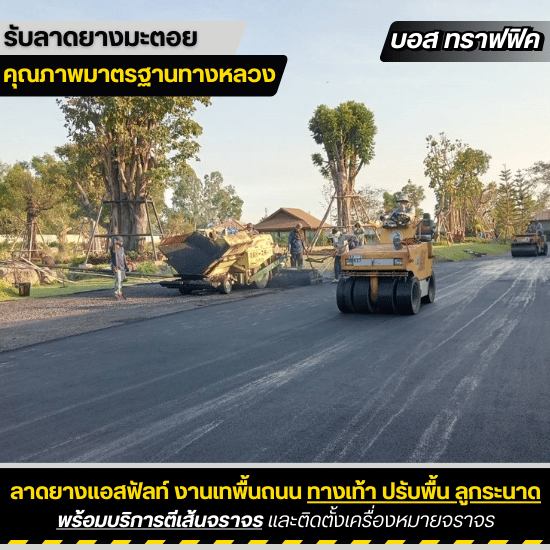 ลาดยางแอสฟัลท์ ยางมะตอย แอสฟัลท์ลาดยางมะตอย รับลาดยางลาดยางแอสฟัลท์ บอส ทราฟฟิค มืออาชีพตัวจริง งานลาดยางมะตอย ครบวงจรในการให้บริการรับเหมาลาดยางมะตอย ลาดแอสฟัลท์คอนกรีต เพื่อทำถนน ทำทาง ทำพื้น ทำทางเท้า ทางเดิน ทำพื้นลานจอดรถ ลานตลาดนัด ปรับพื้น ทำพื้นใหม่ ซ่อมแซมเฉพาะจุดที่เป็นหลุมยุบหรือแตกร้าว ทำลูกระนาด เนินหลังเต่าชะลอความเร็ว พ...